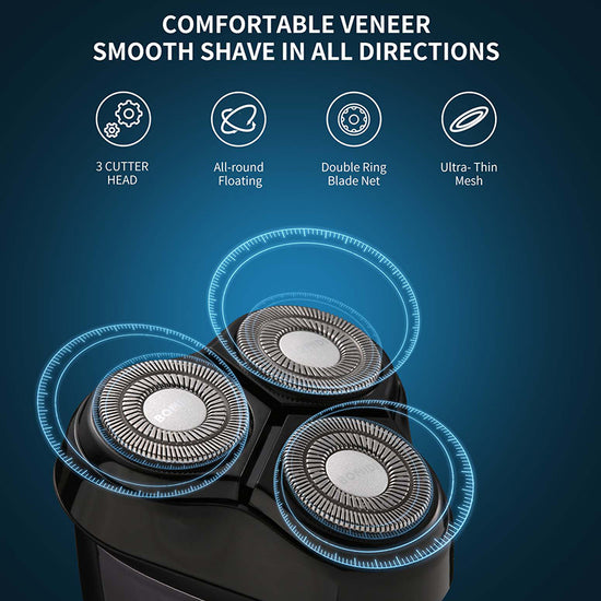 - 3-blade head, double ring blade mesh.