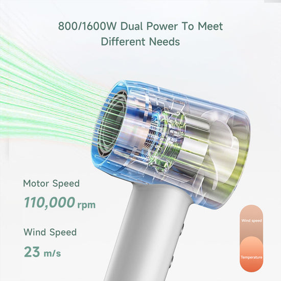 - 110,000 rpm high speed motor, hair dry in a flash.